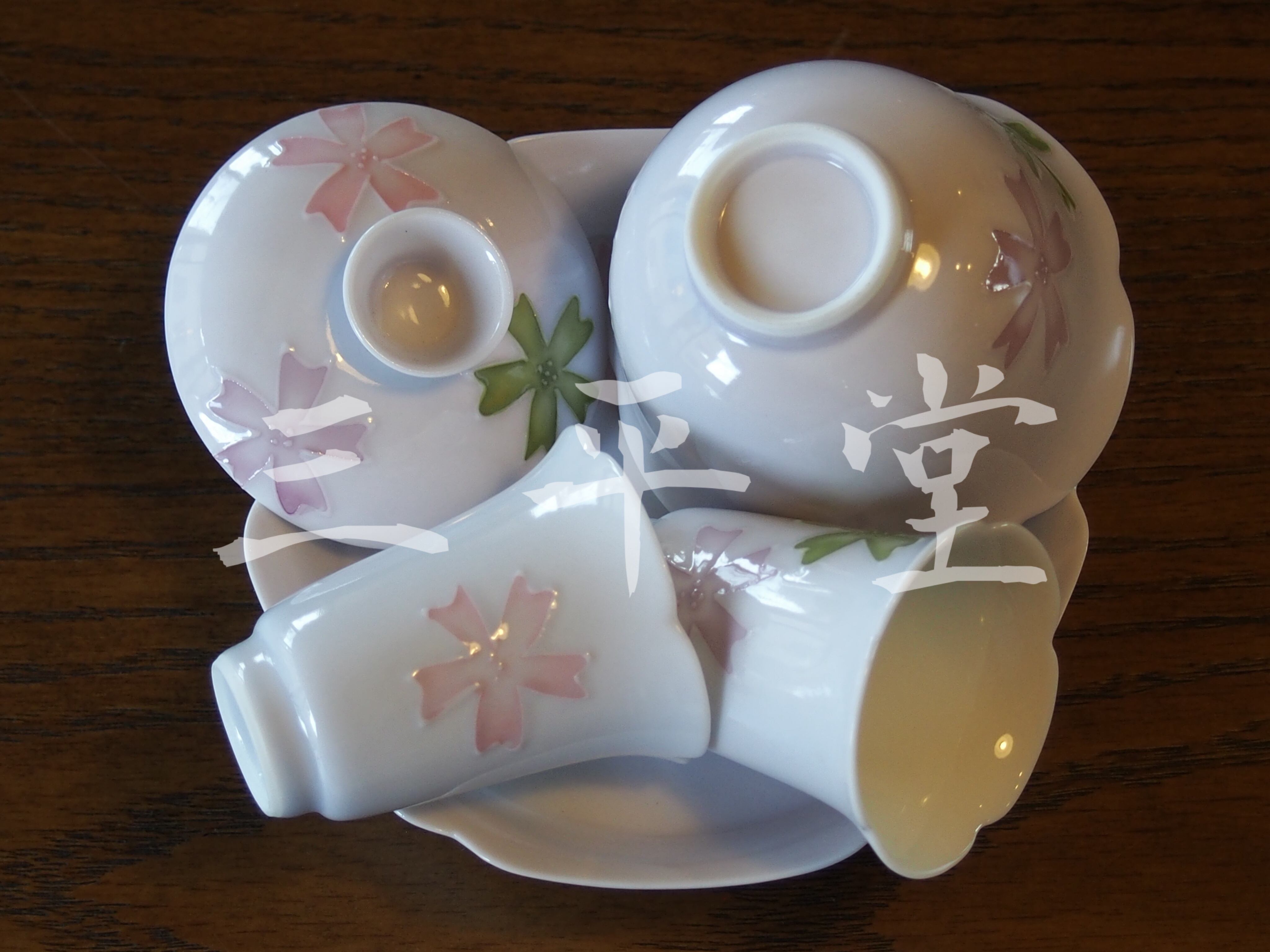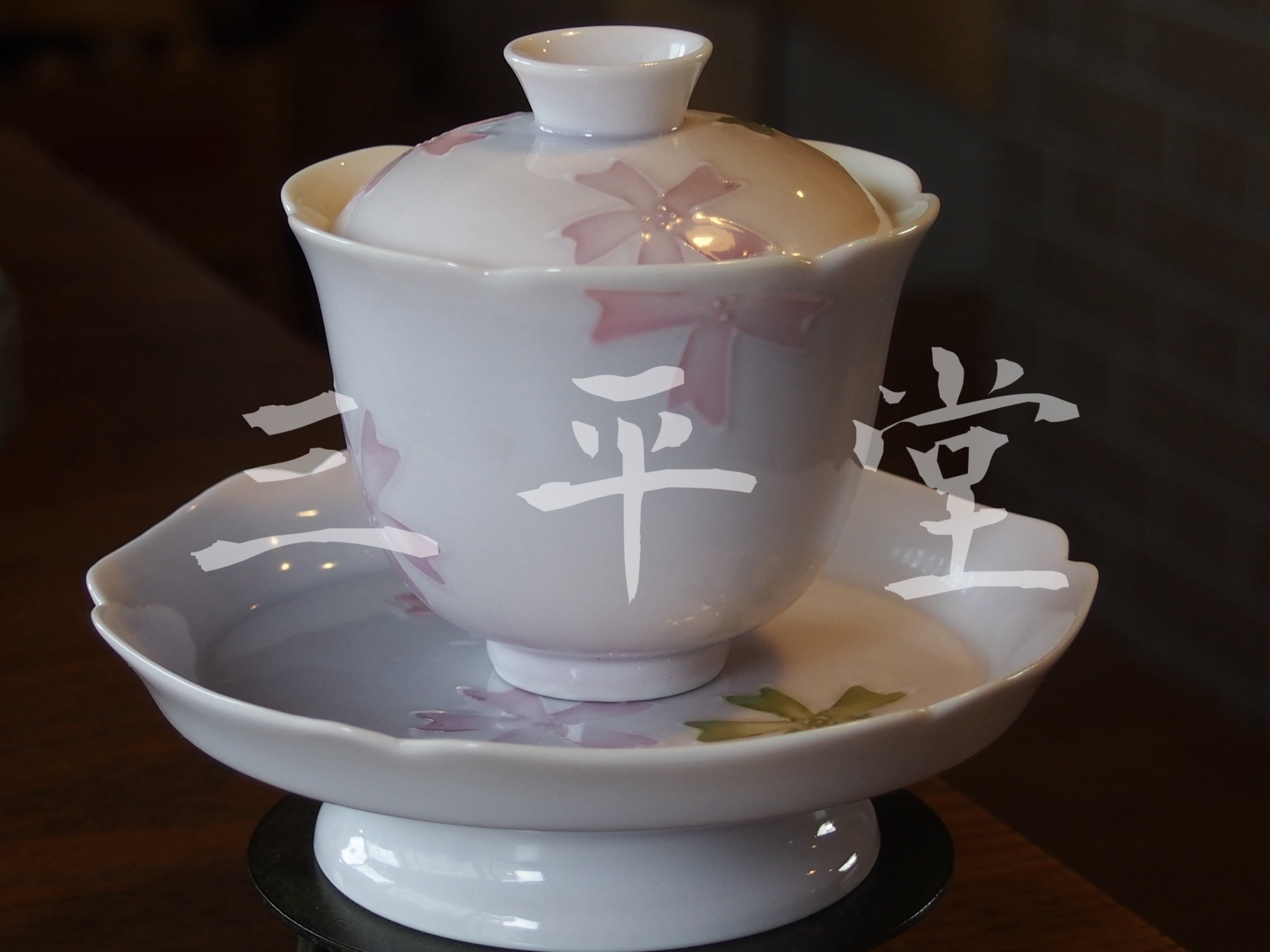 中国茶器 3点セット 手描き 桜 蓋碗