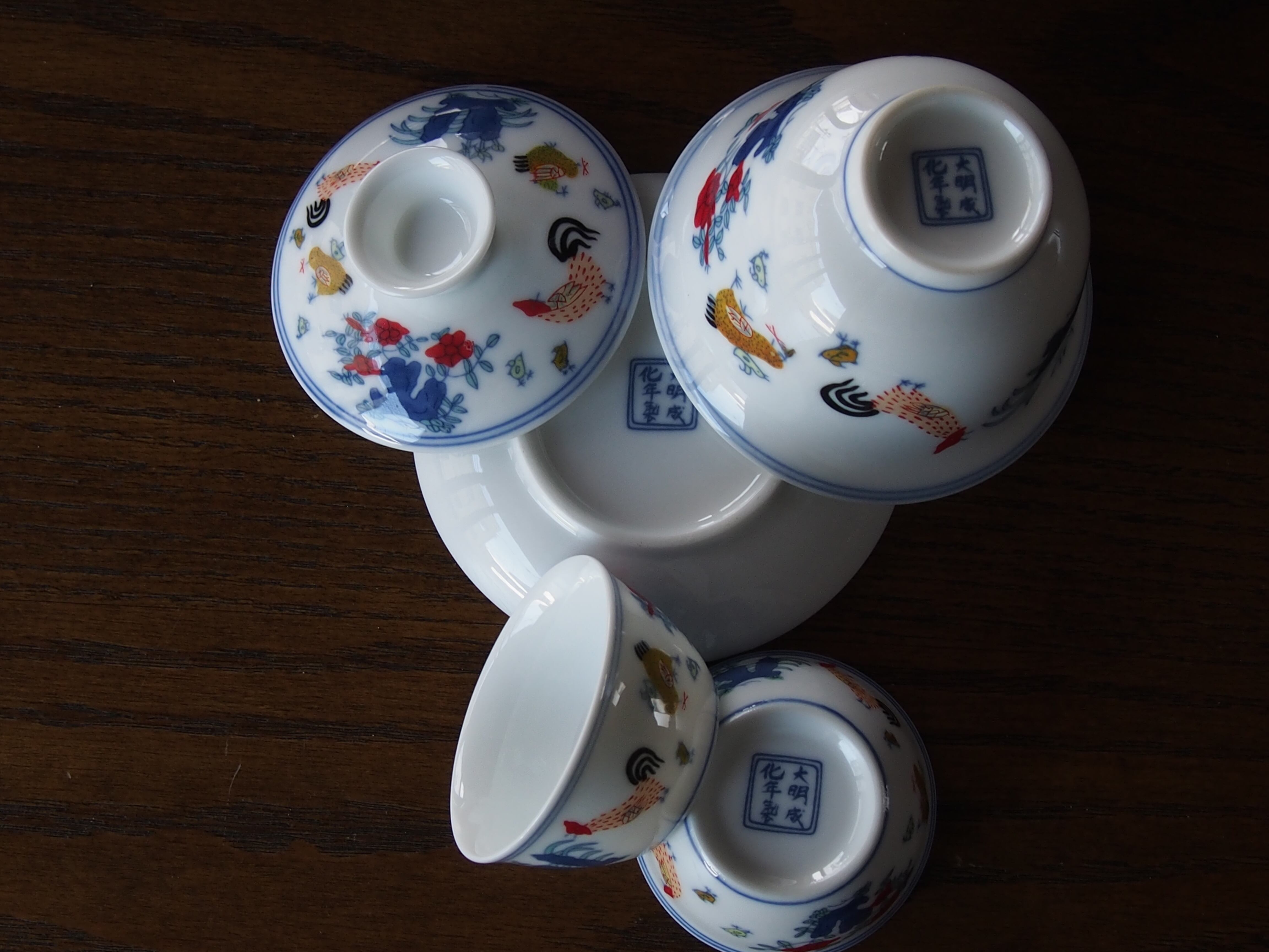 中国茶器 蓋碗 鶏缸杯 チキンカップ 3点セット